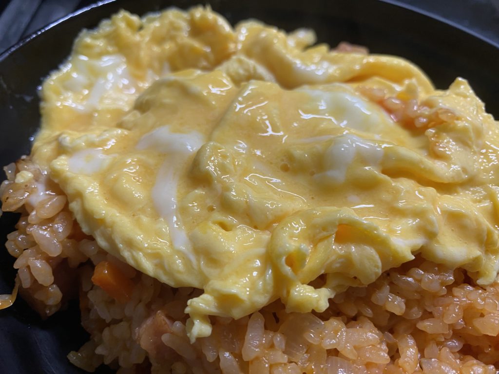 何食か連続で作ると、コツが掴めてくる。IHコンロ1口なのだが、それでもご飯がそれなりに香ばしく炒まった。「それなりに」でしかないのだが。