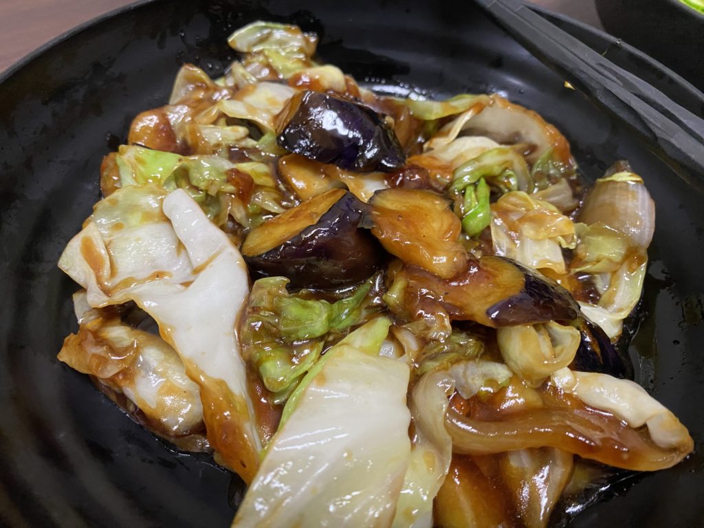 頂き物のナスで回鍋肉風。下味の宮崎特産スパイス、マキシマムが効いてる。