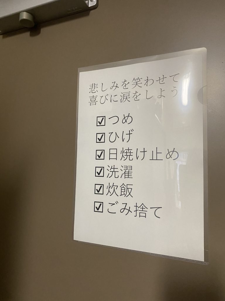 些事だけども忘れたくないものをどうリマインドするかを考えて、先生の家の玄関にあるチェックリストを真似て作ってみた。