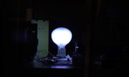 2年次ではシミュレーションに取り組みました。円形断面放電を解析するWaymouthらのモデルと、非円形断面放電の特性を「等価円管」「等価放電」を定義することによって解析したとCaylessのモデルを組み合わせ、また、電子と水銀の弾性衝突の効果を新たに導入して解析しました。電力、電界強度、平均電子密度は、ダブルプローブ法による実験値に近い値を得ましたが、電子温度は33%程度の誤差がありました。