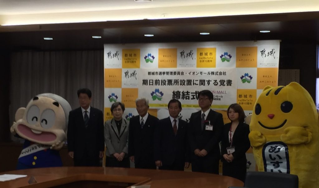 都城市で最大のショッピングモールに期日前投票所を開設。団体が先行して実施していた「投票割」が商業施設の特性とマッチングし、より大規模に実施されることに。